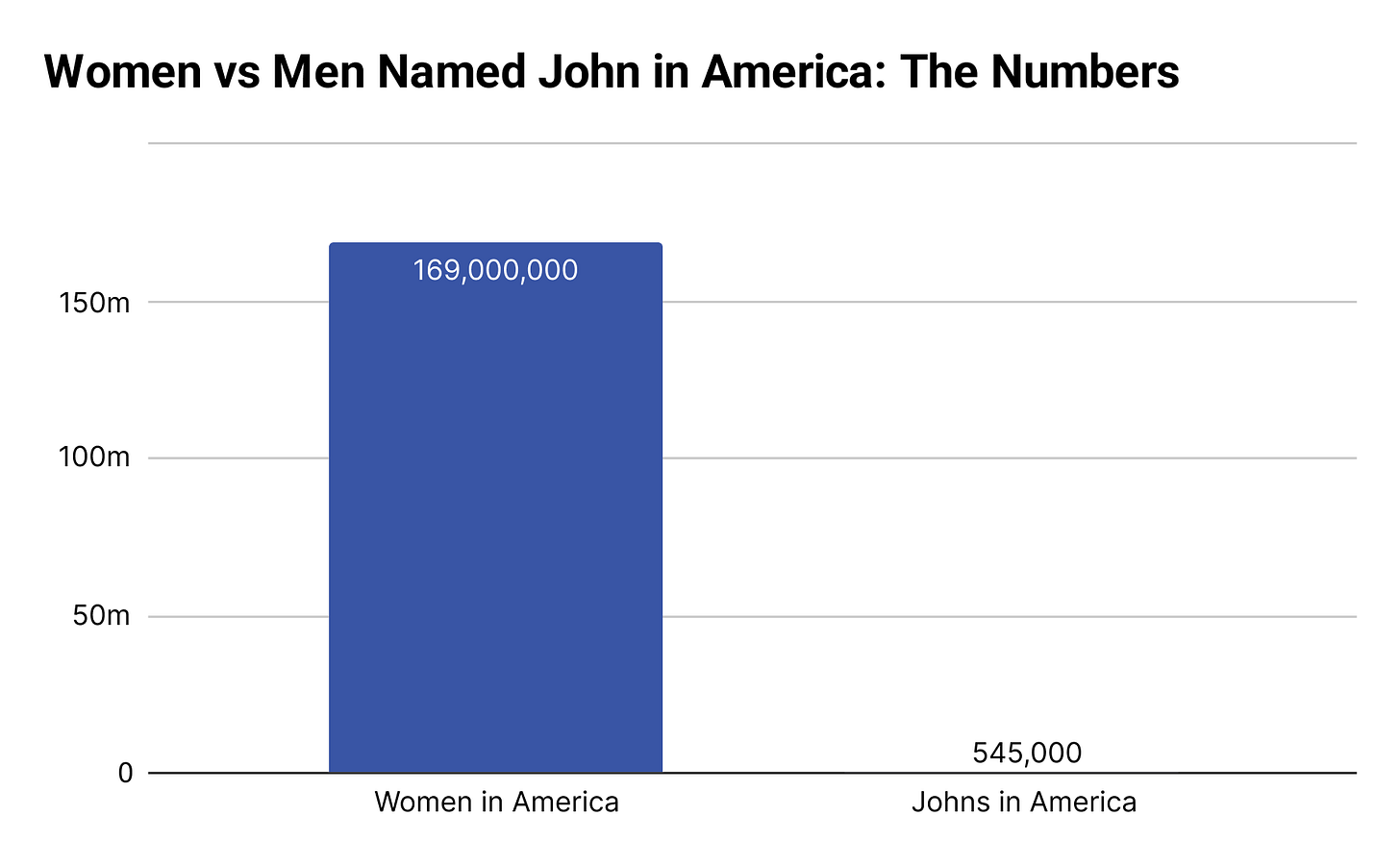 That's not a typo. Men with a single name — representing roughly 3% of the U.S. population — matched the output of all women combined, who make up nearly 51% of Americans. Here is a source and another.