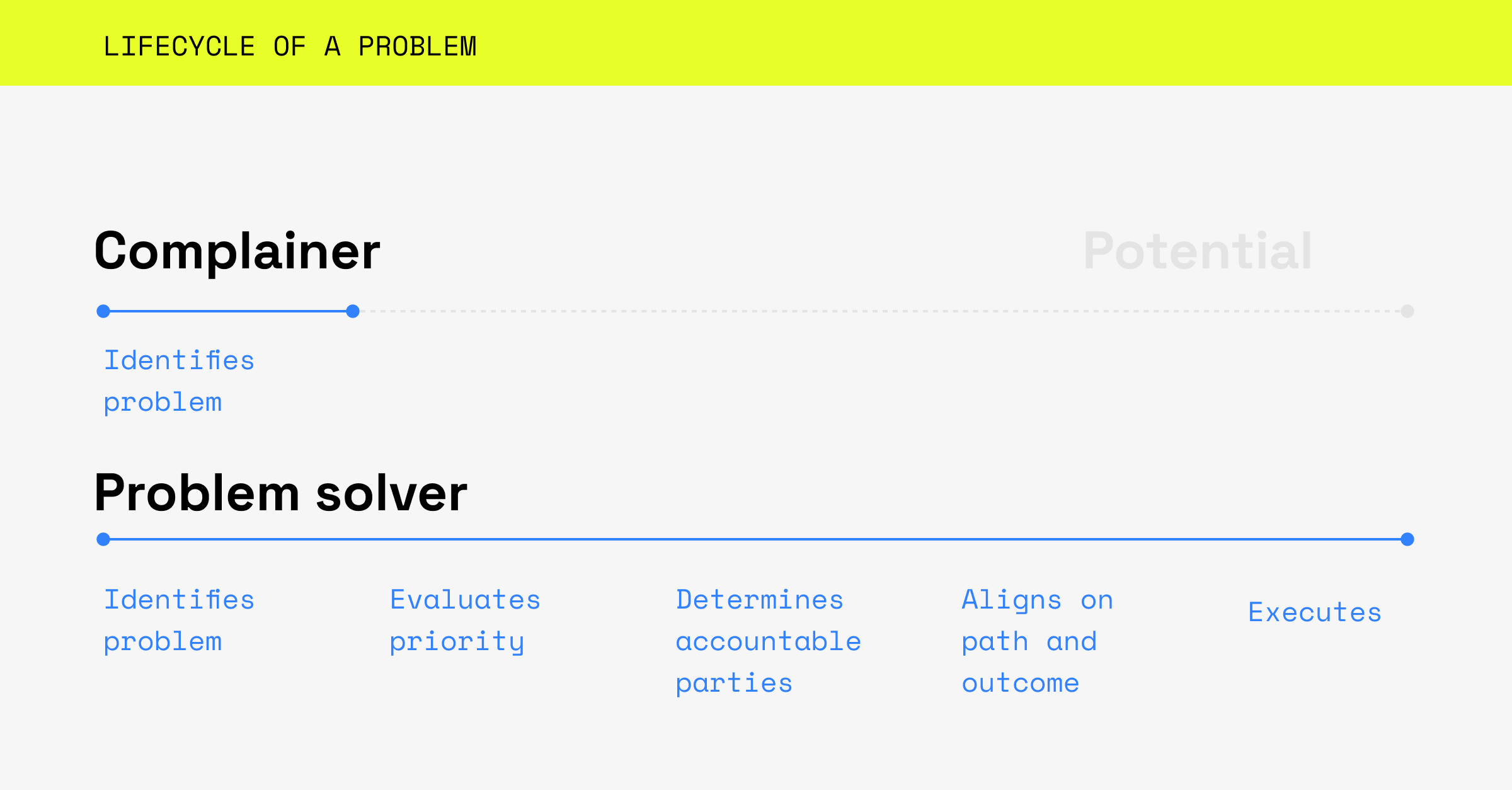 Society loves problem solvers but hates complainers. The gap between the two is narrow, as both start by identifying an issue.